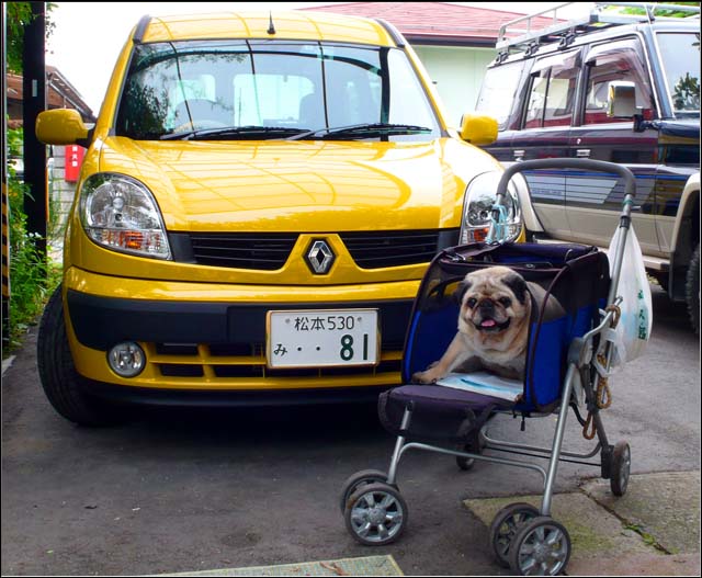 このところ梅雨の休みなので毎朝カートで散歩だ。2週間ぐらい前から朝ご飯は散歩