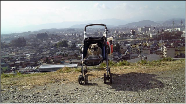 今日は暖かくて何と20度にもなった、それでカートで散歩した後に大嫌いな