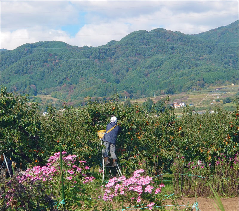 市田柿の収穫。このあと皮をむいてヒモに吊して乾燥して..まだ人手が必要だ。